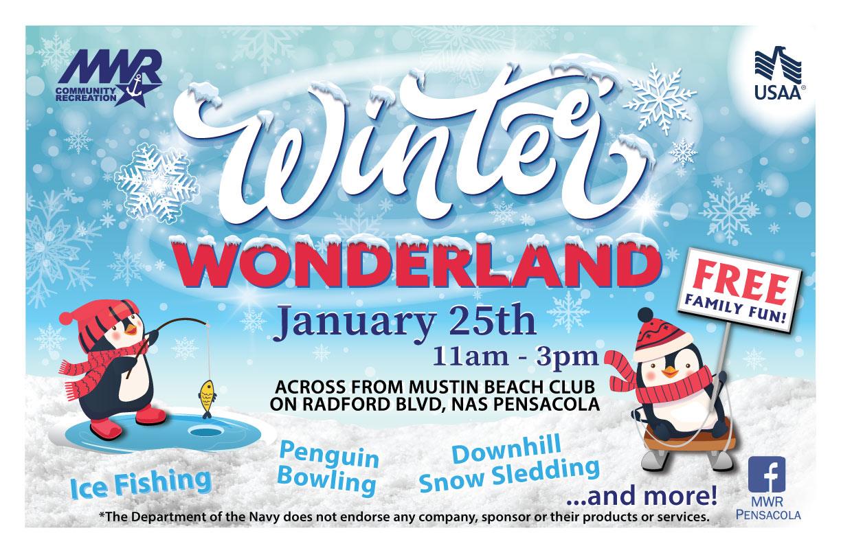 Our Winter Wonderland event is Saturday, January 25 from 11 a.m. - 3 p.m. across from Mustin Beach Club on Radford Blvd. This is a fun FREE family fun event with penguin bowling, ice fishing, bounce houses and more!