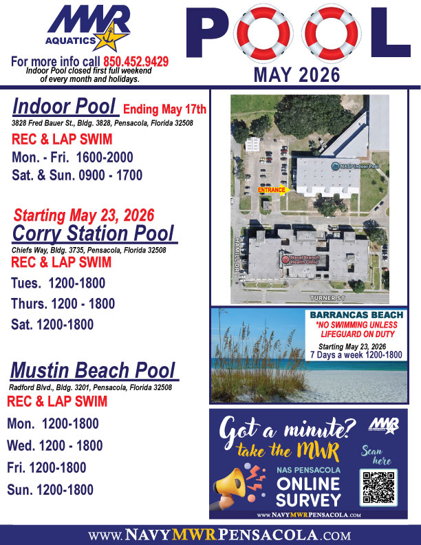 MWR NAS Pensacola/Corry Station hosts two Child Development Centers (CDC) facilities located on base at NAS Pensacola and off-base housing behind NEX at Corry Station. Our program offers full-time and hourly care for children ages six weeks to five years old. Hourly care is based on availability and reservations can be made 30 days in advance.