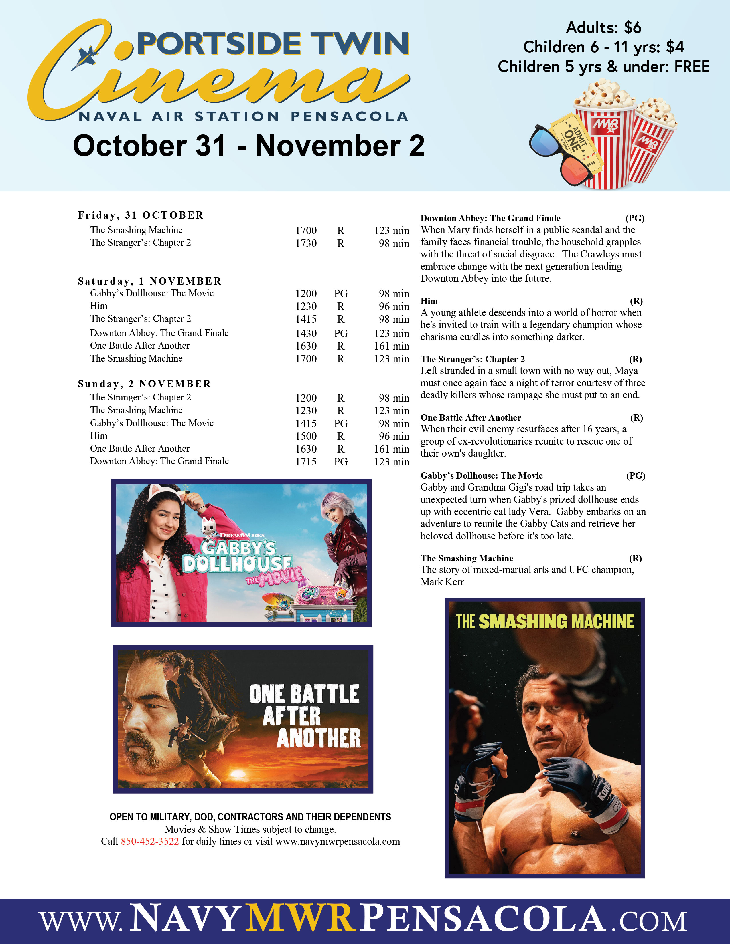 - Call 850-452-3522 for movie schedule recording